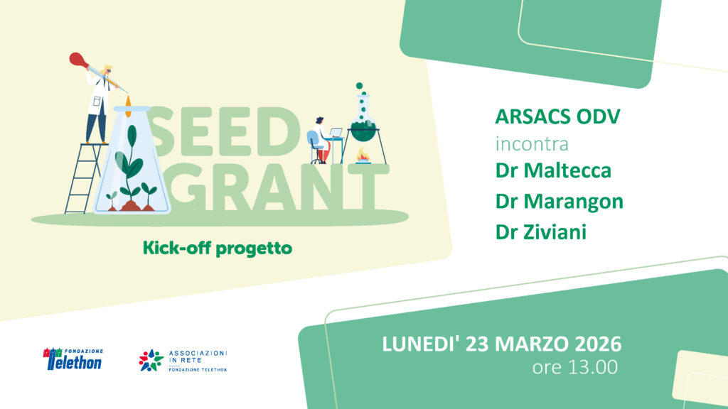 Lunedì 23 marzo 2026 alle ore 13.00 si terrà l'incontro di kick-off dei progetti Seed Grant dei Dr. Maltecca, Marangon e Ziviani all'Associazione ARSACS ODV: durante il meeting i ricercatori illustreranno laicamente in cosa consistano i loro progetti.