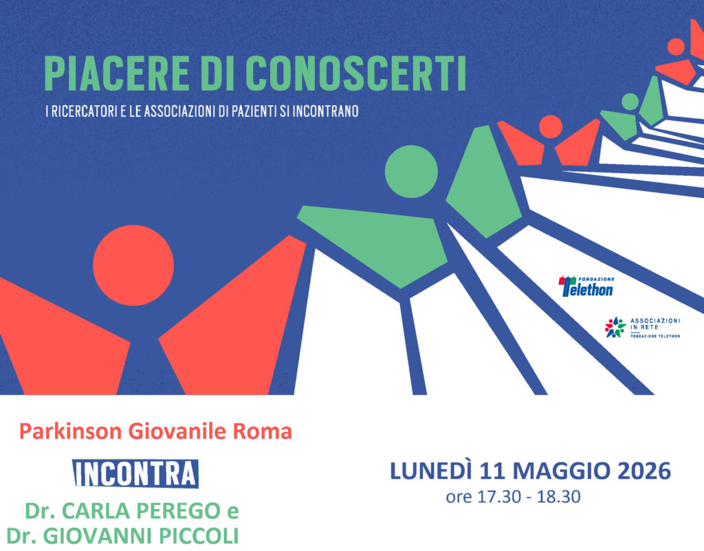 Carla Perego e Giovanni Piccoli incontreranno online l'Associazione Parkinson Giovanile Roma e faranno il punto sull’andamento del loro studio finanziato da Fondazione Telethon: Agonisti del recettore GLP-1 come opportunità terapeutica nella malattia di Parkinson