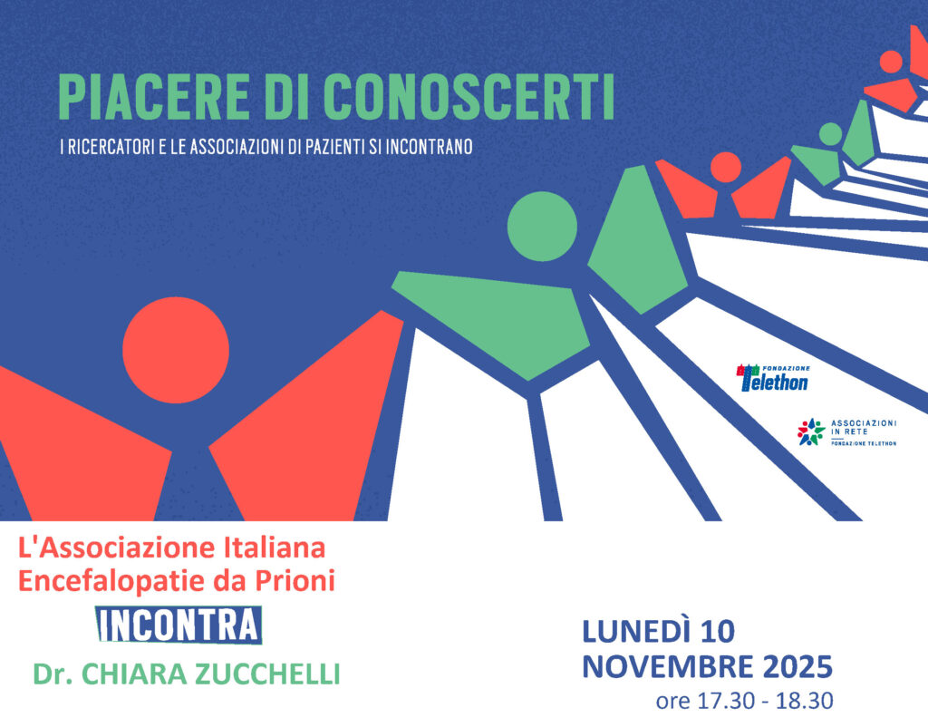Lunedì 10 novembre, dalle ore 17:30 alle 18:30, la ricercatrice Chiara Zucchelli incontrerà online l'Associazione Italiana Encefalopatie da Prioni e farà il punto sull’andamento del suo studio finanziato da Fondazione Telethon: